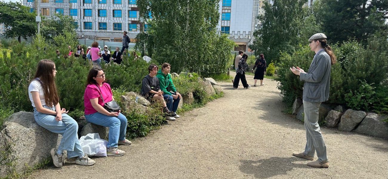 После лекций слушателей ждала экскурсия по ботаническому саду. Им была продемонстрирована коллекция растений, доставшихся университету от проекта «Зеленый театр». Из примечательных видов можно выделить можжевельники и кедровую сосну у пруда, орех маньчжурский, ирисы, каштаны и карагану (часто ошибочно называемую желтой акацией), которая используется в живой изгороди. Недавно в саду появился необычный экземпляр – дерево гинкго. Оно является живым ископаемым, его возникновение прослеживается еще в пермском периоде (298,9–251,9 млн лет назад).